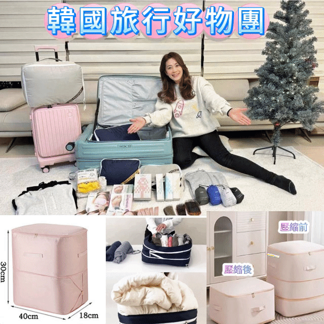 柯以柔× 韓國旅行神隊友|『旅行壓縮包 』物理免插電壓縮袋,體積瞬間縮小40%三層堅韌面料,防水耐磨超大容量!