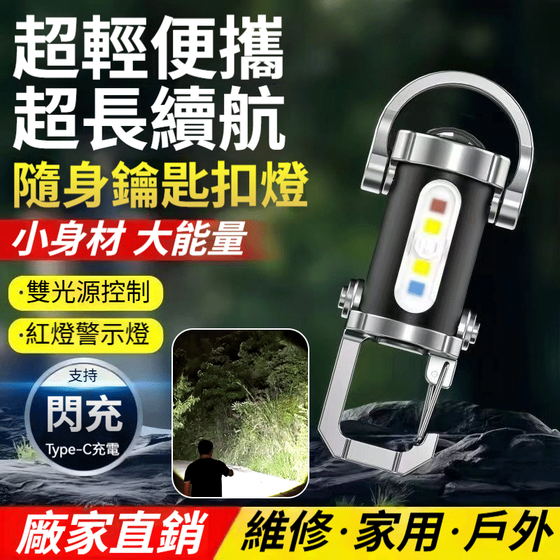 【德式精工】迷你強光鑰匙扣手電筒,超小體積,輕鬆掛在鑰匙圈,隨身攜帶無負擔。高亮度LED燈珠,七檔調節,智能快充,露營、夜跑、應急照明全搞定!